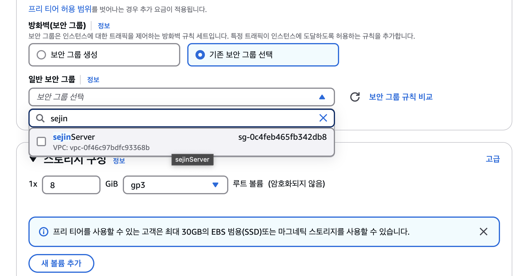 스토리지도 일단 큰건 필요없어서 기본으로 설정해서주는 8기가로 잡고 시작합니다.