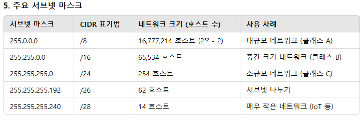 - 네트워크와 호스트 구분: IP 주소에서 네트워크 부분과 호스트 부분을 분리.
