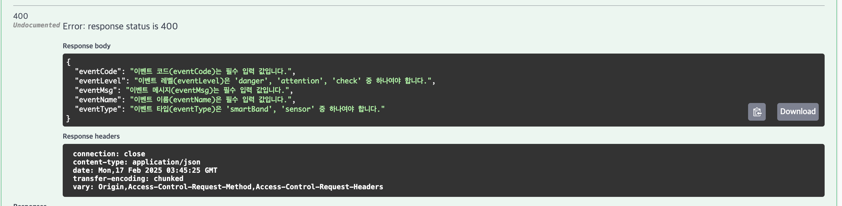 @NotBlank(message = "이벤트 코드(eventCode)는 필수 입력 값입니다.")
